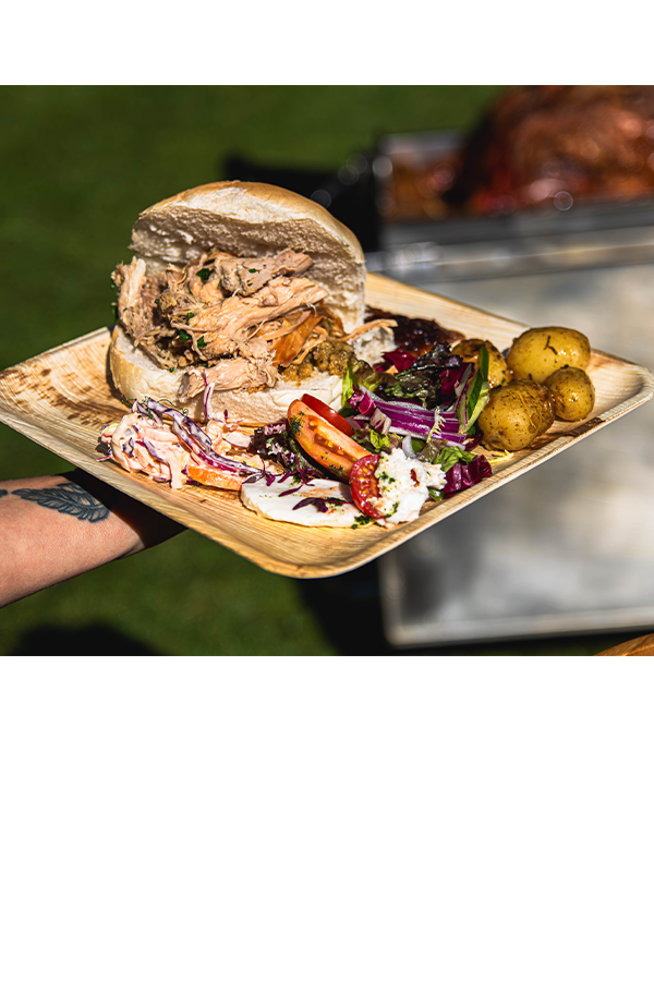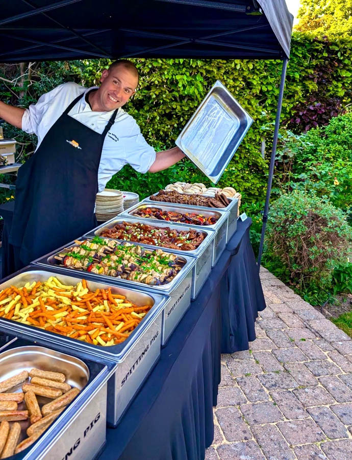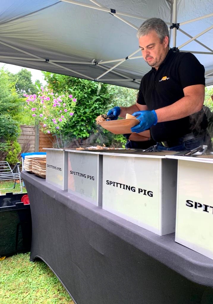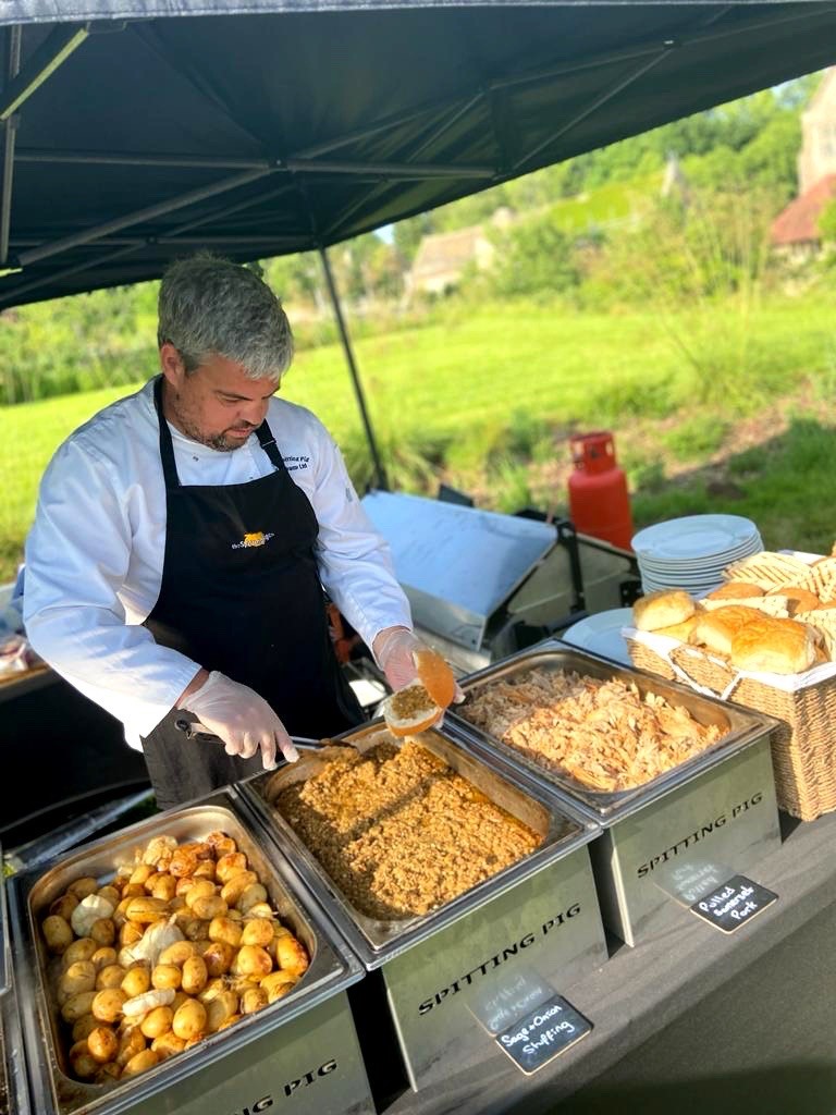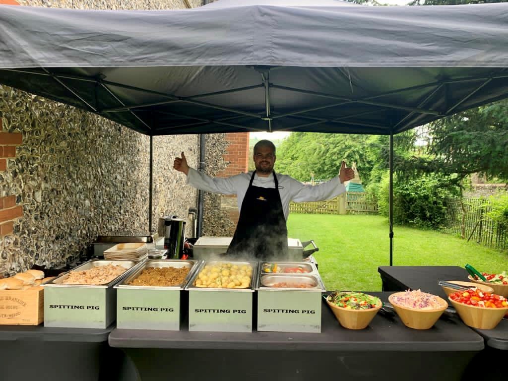 To be honest, I don’t know where to start! Firstly, the customer service we received from booking them, all the way through to the actual event was really great, helpful with all my questions and were in contact to ensure all was going to plan. They turned up when expected and were really friendly and just got on with setting up happily. We ordered a hog roast with stuffing and a vegan option of halloumi and veg skewers, with sweet potato fries and salad/coleslaw as a side for 100 people … it was absolutely incredible, I cannot even begin to describe how good, everyone kept coming up to me saying how amazing it was. The staff happily left us the remainder of the food that wasn’t consumed and this was gone pretty much within the hour after the staff left the event as people just couldn’t get enough of it! On top of that, the staff were so great, happily chatting away to us and overall just had a really good vibe! I will happily be recommending Spitting Pig to anyone that needs catering!
