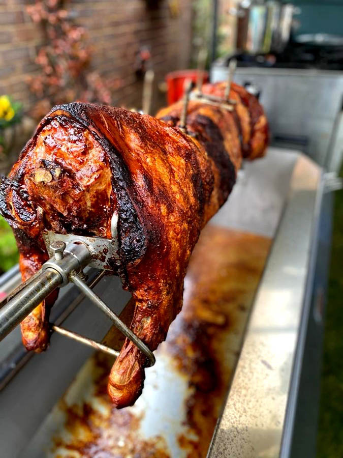 We were worried that for a smart black tie event that they would not be the right thing, but they were wonderful. They were invariably professional, well organised, accommodating and efficient people with which to deal. The pork itself was juicy and really delicious – cooked for hours – they had woken at 4am to have it ready for 8:30pm but the crackling was what attracted the highest praise. The sides and salads were all great too – and they served my birthday cake with their usual efficiency. They seemed to be a really well run and friendly team of people too, if only more businesses were like them.